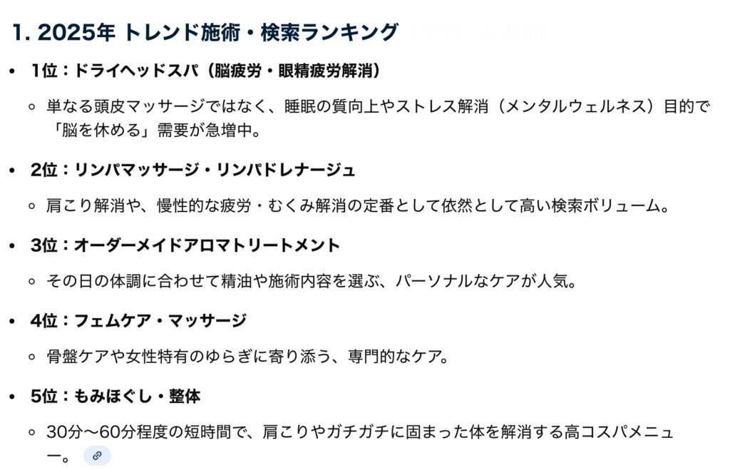 結論から言いますと、「ドライヘッドスパ」が2025年リラクゼーション部門検索ランキング“1位”になりました!!